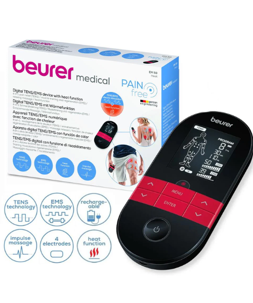 3 en 1: terapia TENS para alivio del dolor, EMS para tonificación muscular y función de calor relajante.